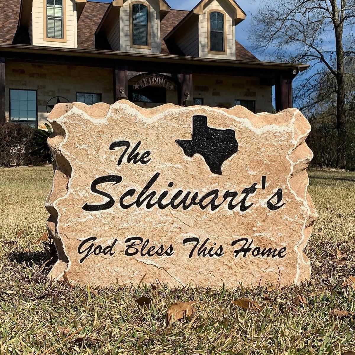 Whether you want to establish your family name, display a patriotic image, or shout out the entrance to your rambling ranch, we’ve got what you’re looking for. Our signage rocks are made of natural and durable materials that mimic the beauty and timelessness of stone. It’s an easy, inexpensive way to add that custom touch to your residential landscape. Standing regally at the entrance to your estate, this beautifully engraved boulder will stand out in your neighborhood.